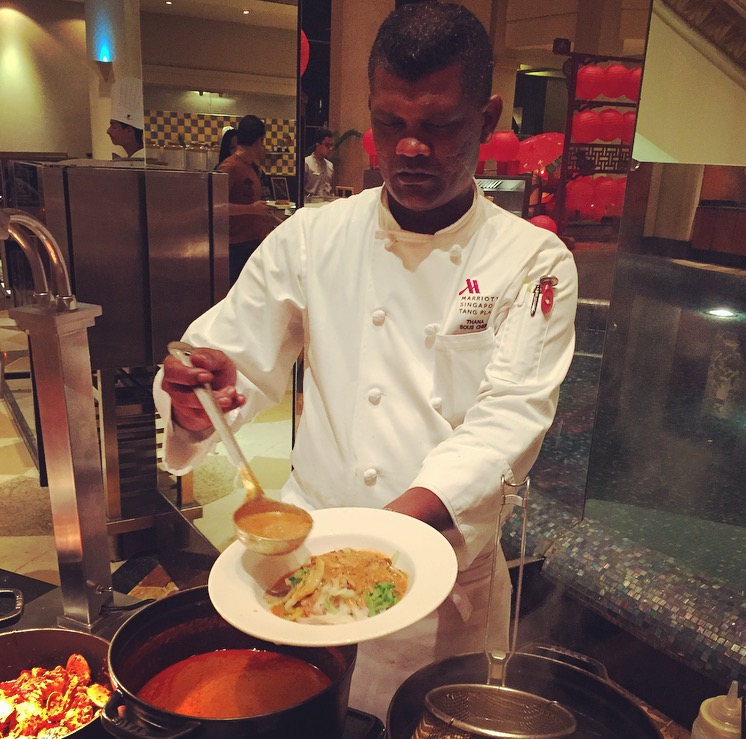 I was fortunate to get a taste of Singaporean street food at JW Marriott Juhu, Mumbai’s Singapore Food Festival at its bustling Lotus Cafe. Singapore Marriott’s Sous Chef, Chef Thanabalan Chandrasekaran specially flew down to Mumbai to showcase his exceptional culinary skills with his signature preparations and street food favorites. Upon being asked about Singaporean cuisine, he said, ‘Singaporean cuisine is truly a melting pot of Asian cultural cuisine and in a sense, can be called truly International. An amalgamation of Chinese, Thai, Malay, Indian and many more cuisines, Singaporean dishes incorporate fresh spices that lends the quintessential flavor to the dishes. It is a cuisine that is enjoyed by most, since it has a flavor for every palate.’