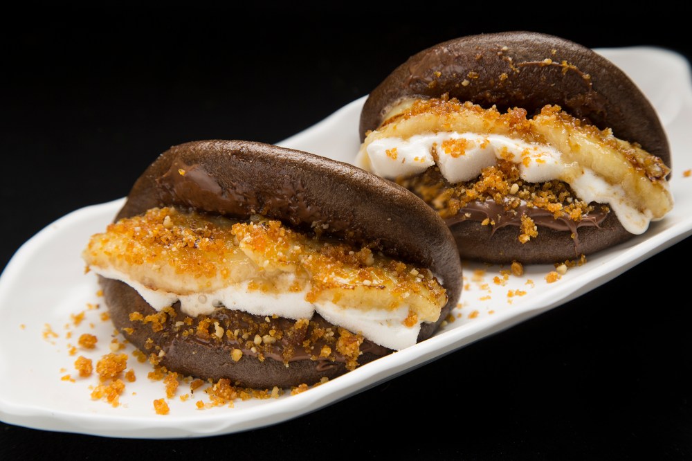 – Bruleed banana and homemade marshmellows tucked into a fluffy chocolate bun, topped with hazelnut crumbs were a match made in heaven. Innovative combination and absolutely irresistible.